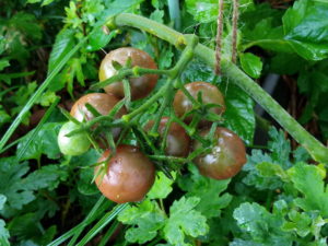 トスカーナバイオレットの実が色付き始めました。7個中6つが変わりつつあります。現在は摘んで仏様にお供えしました。『わし等の時は赤茄子でさえ珍しかったのに、変わった色の野菜じゃの~。』な~んて仰る方もあるかな?