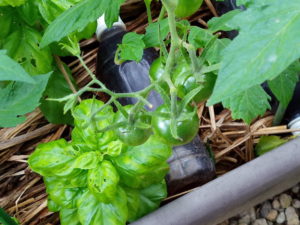 トスカーナバイオレット(手前)第一果房は後一つ、第二果房は今膨らんでいます。奥のトスカーナバイオレットの第二果房です。