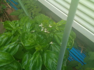 バジルの白い花が咲いて居ます。そろそろ節から摘まないと。蒸気が入った?実梅の枝が来年の花芽を考えると、私の妄想の中ではかなり好い感じに見えます(笑)。😻😾『もーそーだにゃ~!!』
