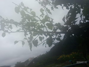 最低気温21度台、最高気温23度台、曇り、とは言ってもお隣の屋根瓦は濡れていますし、窓際では湿度が異様に高いからいつ雨が降ってもおかしくないです。南西の風4-6mです。