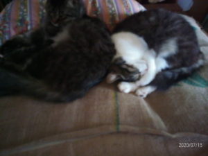 😻『相変わらず、オカアシャン、能天気だよね。』😾『でもしゃぁ、ネガティヴ要素にだけ焦点を合わせちゃいけないんだよ~。自分の人生の現実は自分の意識がちゅくる、ってオカアシャンもいってたよ~。』😻『そうね。猫の考え方に大分染まって来たわねぇ。ワタチ達の影響かしら?』😾『しょうだね。』