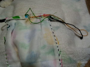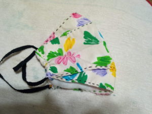 そこで、いつか見つけてリストに入れて置いたマスクの作り方を参考に作ってみました。というか…縫って居ます!