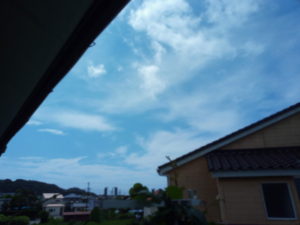 7時2分の空です。南には青空が微かですが、覗いて居ます。週間天気予報は毎日変わりますから、梅雨明けが遠退いたり、近くになったり、全く予想がつきません。