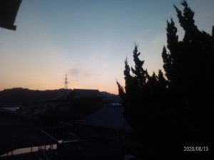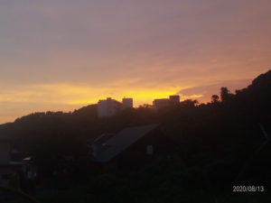 残照がこれからの気象の荒れを予告しているのか、と思いましたが、雨雲レーダーでは雨雲はこの町を避けて通ります。
