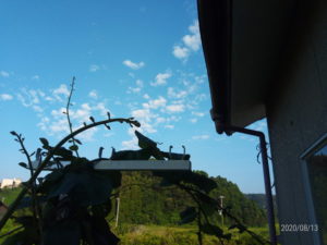 水撒きをするとビショビショになるけれど、その位にすると気持ちが好いですね。どうせTシャツは汗ばんでいるから洗います。昼寝をしていたらベッドの下からセミの鳴き声がしたのでビックリして置きました。うめが『あら、起きちゃったわよ~。トラちゃん。』