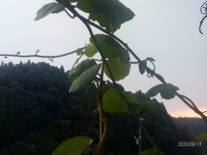 18時10分、柔らかな光が下りて来ました。写真では見えませんが、勝浦方面に帰って行く烏が映って居ます。昔みたいに大きな何百と言う群れではありませんが、30羽くらいはいました。夕焼が少しだけ見えました。