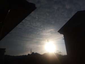 (右)太陽が上がって来た真東に近い所は辛うじて雲がありません。