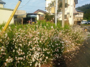 一寸、ドキドキしてしまう位の雲だったので、心を庭の水遣りに切り換え、1次液2本、2次液2本を使って水遣りをして来ました。4リットルジョウロに200㏄の原液を入れたので、20倍希釈液になりました。茄子のあるB4畝、B2畝、B1畝、里芋畝に4リットルジョウロを振るいまわして蒔きました。