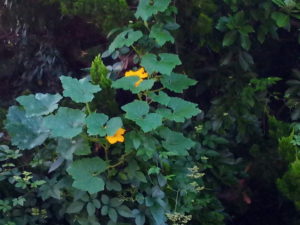 (中)外壁沿いに一つ咲いた南瓜の花。