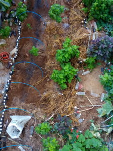 (右)土を被せ刈草を乗せました。水をサッとかけましたが、後で、海水EM活性希釈液50倍を撒きます。人参も蒔きたいなぁ。トマトの来季の堆肥穴は明日ですね。