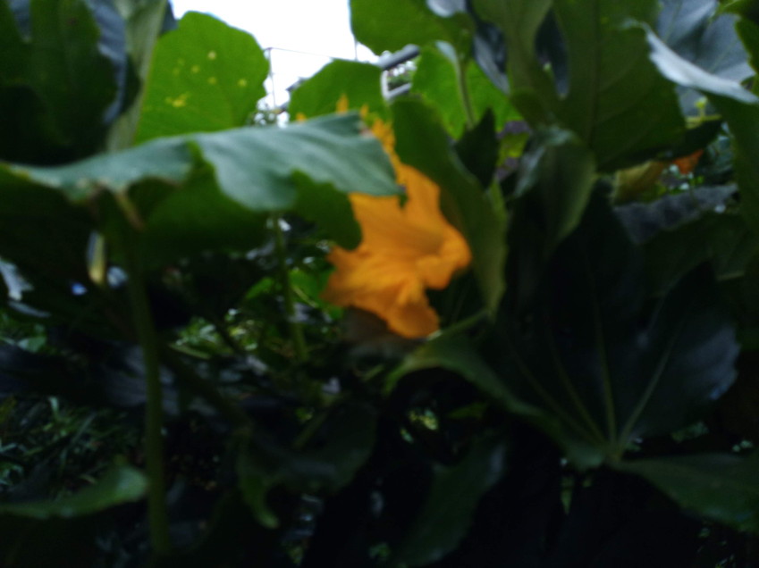 (左)ボケて仕舞いましたが、受粉した南瓜は10㎝弱になりました。