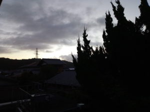 5時5分の空です。雨が6時台に降るって本当かい?、な~んて油断して台所に居たら、6時少し前に南西から吹き込んで廊下の半分がびしょ濡れでした。東側の窓も桟がびしょ濡れ。やれやれ!