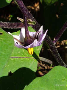 (左)反り返った茄子の花(昨夕葉面散布したせい?)