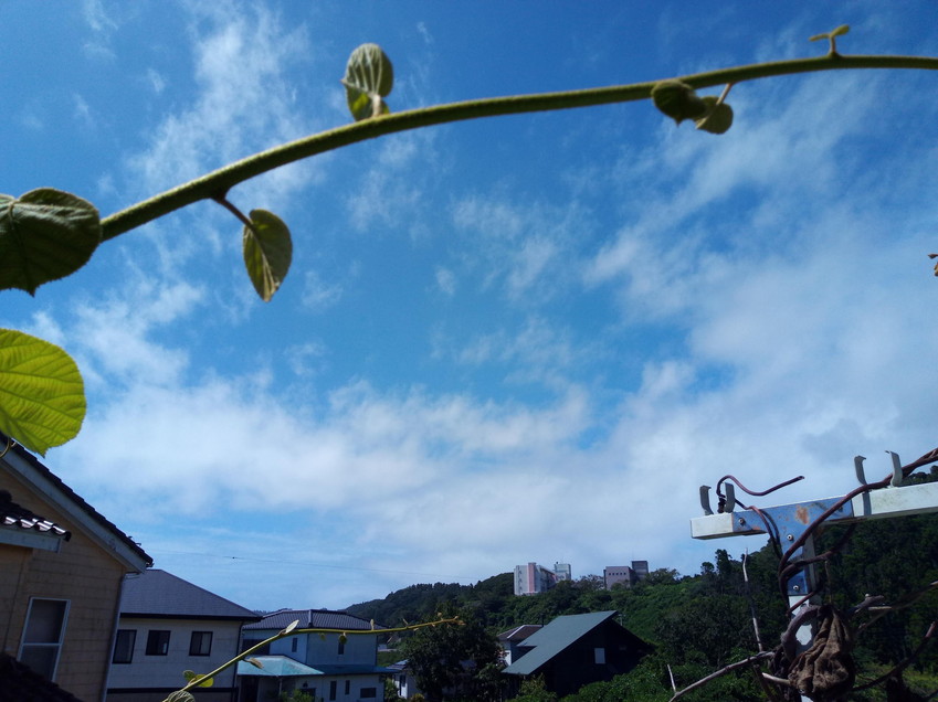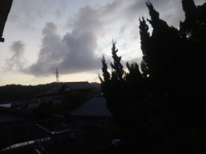 最低気温27度台と高め、最高気温31度台。晴れ、一時曇り、時々雨…分かり難い天気ですが、8時と12―15時に雨マークが付いて朝早くと雨後は晴れで、南南西の吹き返し?が7-8mです。昨夜22―23時には結構激しく雨が降って居ましたが、此処2時間以内では降った可能性はありません。物干しざおには全く水滴が付いて居ません。南南西と言うよりは南西風が結構強めです。