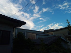 気付くかなかったけれど、方向性は同じですが、2列になって居ますね。福島県沖ですかね。7日にもありましたね。南西から雲が迫って居ますね。洗濯ものを取り込んで置きましょう。10時、家でコーヒーを飲んで居たら、風が吹いて雲がやって来ました。降るのかなぁ。