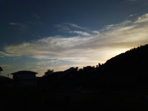 16時53分、墨を流した様な模様を描いて雲が発達して来ました。太陽は真西寄り少し北寄りです。