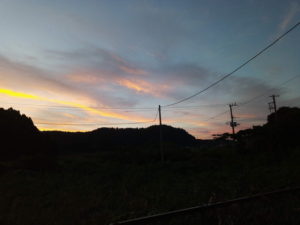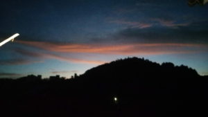 久し振りの鮮やかな残照ですが、起点がほぼ真北か北北東に在ります。日没は17時56分でした。
