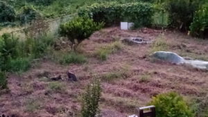 さて、本日の仕事はリヤカーで端材を貰いに出かけます。低い堆肥枠を数カ所に作ります。以前、水義さんに頂いたパレットの長さを調整した時に出た端材と合わせて小さいパレットを作ります。4面分のパレットを針金で縛って4カ所に突き刺した支柱代わりの杭に結びます。これで草や生ごみ等をどんどん放り込む事が出来ます。