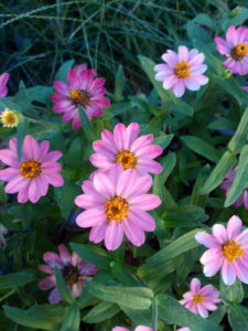 日日草の零れ種の発芽です。赤と白いアイの在る濃いピンクとサーモンピンクの花が交雑しているかも知れません。強いですね。