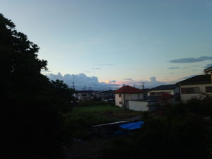 しかし、実際には東にオレンジ色の光が見え、南の入道雲は赤く染まって綺麗です。