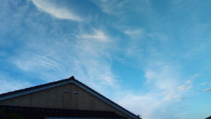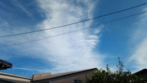 不燃ごみを出しに行ったら、私が追いかけている雲がもっと、もっとダイナミックでした。東北東側、8時38分。