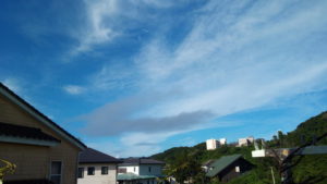 (中&右)雲は東北東へ向かいます。福島県沖がある時の方向です。西忠さんへの横道で、東北東方面。