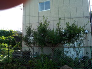 (中)水義さんから湧けて頂いた1本の細い枝がこんなになりました。プランター上です。
