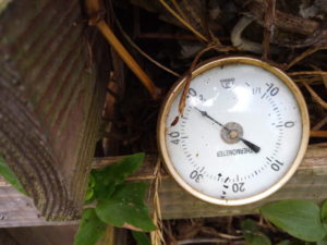 左と中は同じ零れ種。右の写真は堆肥枠の土中温度は47-48度でした。