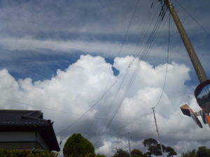 (右)これは真北の方角で、さっきまでなかったのに蓋が出来て仕舞いました。上に薄く浮かんでいる雲が釈の一部です。こちら側は積乱雲のパワーが勝ってしまった様です。