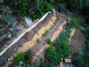 白菜畝にも今日植える白菜の為にニーム希釈液を500mlずつ、中央の二か所に与えて来ました。