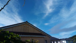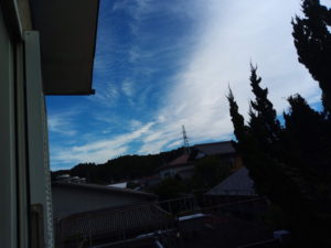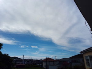 不燃ごみを出しに行ったら、私が追いかけている雲がもっと、もっとダイナミックでした。東北東側、8時38分。
