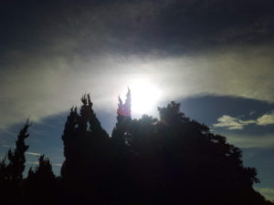 (左)9時38分、玄関前から南西―西南西の釈のあった所を望む。消えたのかなぁ。