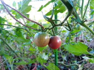 (左)トマトルネッサンスの種、2個食べてたったこれだけ!元々種の少ない品種なのですね。トスカーナバイオレットの種はうっかり流しに流して仕舞いました(涙)。でも、さっき色付いて来たのを見つけたから未だ大丈夫!