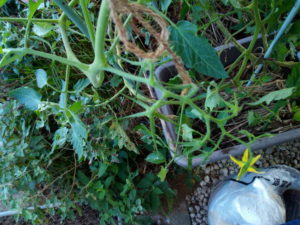 (中)水義さんから湧けて頂いた1本の細い枝がこんなになりました。プランター上です。