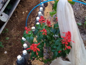 白菜畝にも今日植える白菜の為にニーム希釈液を500mlずつ、中央の二か所に与えて来ました。