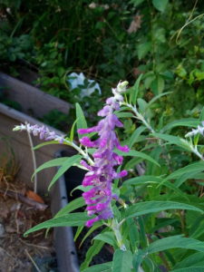 (左)サルビアレウカンサメキシカーナの第一花です。