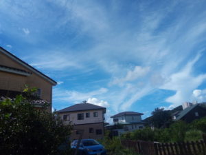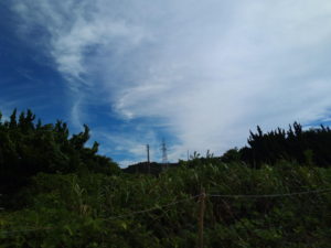 (中&右)雲は東北東へ向かいます。福島県沖がある時の方向です。西忠さんへの横道で、東北東方面。