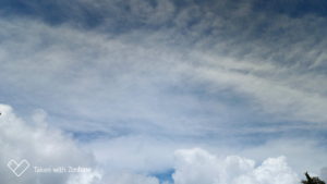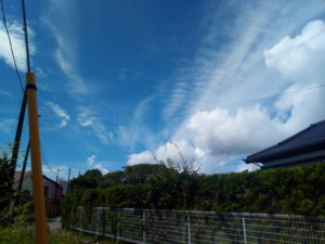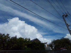 (右)これは真北の方角で、さっきまでなかったのに蓋が出来て仕舞いました。上に薄く浮かんでいる雲が釈の一部です。こちら側は積乱雲のパワーが勝ってしまった様です。