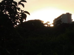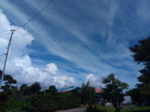 最低気温25度台、最高気温31度台、曇り時々雨(7―10時)、南寄りの風3―4m。そして、明日は熱帯性低気圧が北上して来て前線が活発になり、一日中雨です。