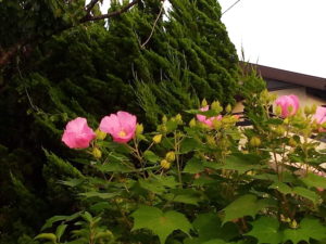 (右)庭の隅にある縮緬紫蘇も花穂を上げ始めました。例年通りですね。10月5日前後には穂紫蘇の収穫です。