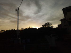 しかし、実際には東にオレンジ色の光が見え、南の入道雲は赤く染まって綺麗です。