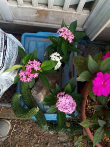 (中)植える前のペンタス。結局、ピンク3株を一鉢へ。白は日日草赤と一緒に。