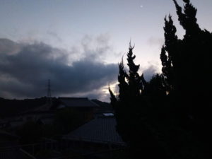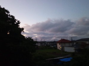 お隣の雨戸を開ける音がしています。夏休み前とでは1時間遅くなりましたね。私もそろそろお風呂に入ろう。燻らせていた蚊取り線香の渦が見える様になりました。福は何時に出て行ったのかなぁ。今はケージで私を視界内に抑えて寝ています。鳴く鳥が雀になりましたね。