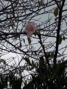 (右)桜に一輪の狂い咲き。でも、この時期は良くあるんですよね。既に花芽分化は5月6月に終わっているから、咲く可能性はあるのですが、夏の暑さを冬のストレスと感じてしまったのでしょうか。