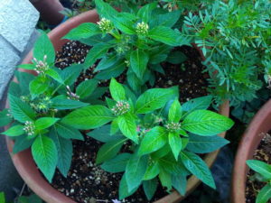 (左)ペンタスの花が終わり、次の花芽が膨らんでいます。