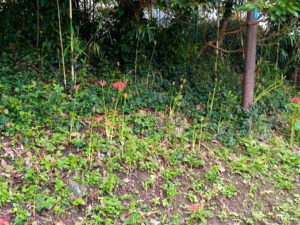 今朝の庭です。後二週間したらサツマイモの試し掘りです。