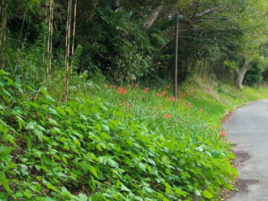 (左)住宅地の出口には黄色い彼岸花が増えました。