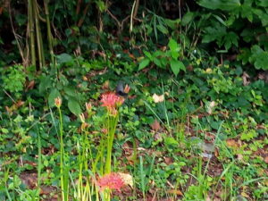 一昨日、上がった蕾が開いた彼岸花にアゲハチョウがやって来て蜜を吸っていました。羽を閉じたり開いたりしながら蜜を吸うのはしっていましたが、全身運動でカラダを目一杯に使って食事をしているんだなぁ、と気付きました。その点では私達人間も同じでしょう。消化吸収というのはそれだけのエネルギーを使わなければ出来ない事に改めて気付かされました。