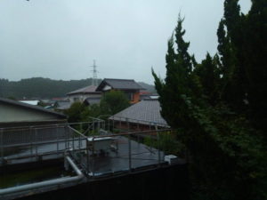 13時日が差して来ましたが、雨は相変わらずです。窓を開けて聞こえるのは百舌鳥の声ばかり。まぁ、柿の葉が減った事!風が一桁の風力になっただけで有難いですね。