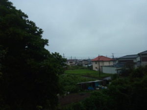 雨は半透明のカーテンになって南へ動いています。10時には上がる兆しが見えそうです。但し、降水確率は70%と高いですから、曇りマークでも雨が降る事は在り得ます。夜には22時頃からまた雨になります。